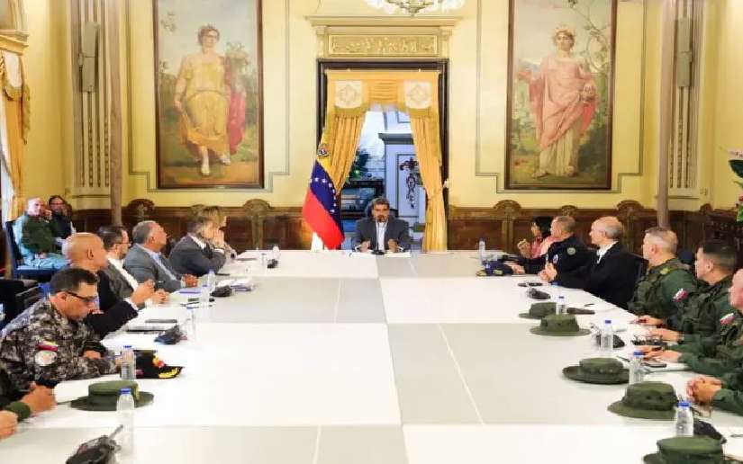 El presidente de Venezuela, Nicolás Maduro con la participación de los cinco Poderes Constitucionales del país, inició una transmisión desde el Palacio de Miraflores en sesión conjunta del Consejo de Defensa de la Nación y el Consejo de Estado, dos instancias del más alto nivel, y también con la presencia del Estado Mayor Superior.