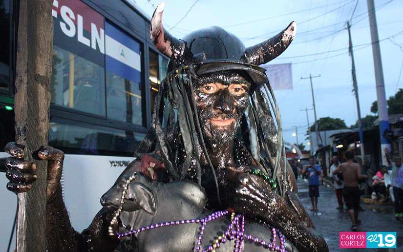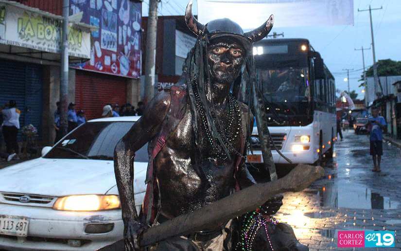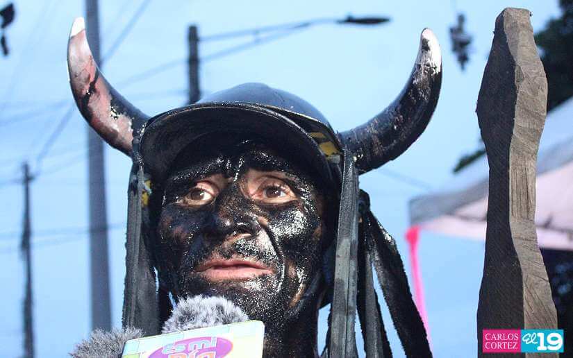 Con 31 años participando en las fiestas por el milagro de la vida entregado por Dios tras un accidente en su infancia, Juan Ramón Cruz, llegó una vez más con el cuerpo pintado de aceite negro, cueros y un bastón bailando con gran emoción.