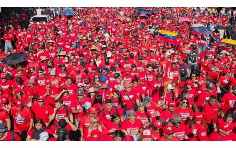 Con pancartas, consignas y banderas, la juventud venezolana destacó que la paz es una de las garantías principales de la Revolución Bolivariana, y rechazó las medidas impuestas por el Gobierno de Estados Unidos, cuando se cumplen cinco años del bloqueo de las divisas venezolanas.