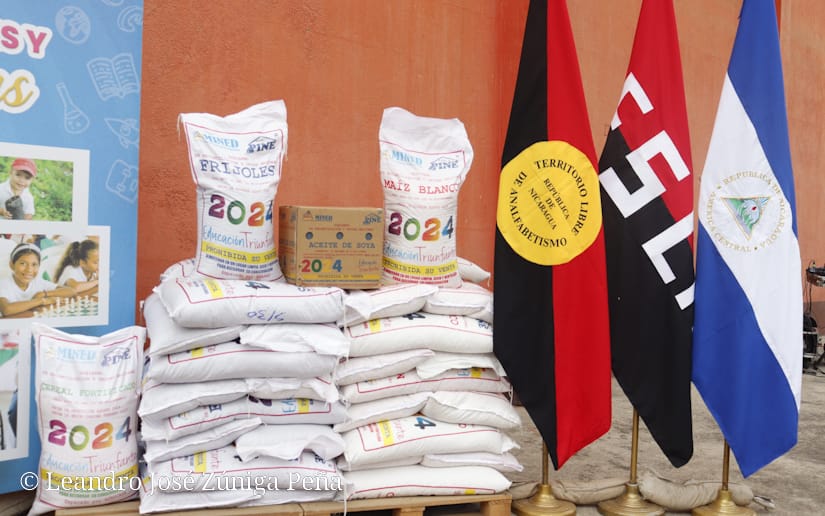 "Estamos llevando 44 mil 200 quintales de cereal, 47 mil quintales de arroz, 33 mil 548 quintales de frijoles, 43 mil 932 quintales de maíz, 7 mil 900 quintales de harina de trigo, 135 mil galones de aceite, merienda entregada 100% para los estudiantes de educación inicial, primaria, además de las modalidades de primaria y secundaria a distancia en el campo, así como en las Escuelas Normales de Formación Superior, llegando esta distribución a 1 millón 200 mil raciones que son preparadas a diario", añadió Aráuz.