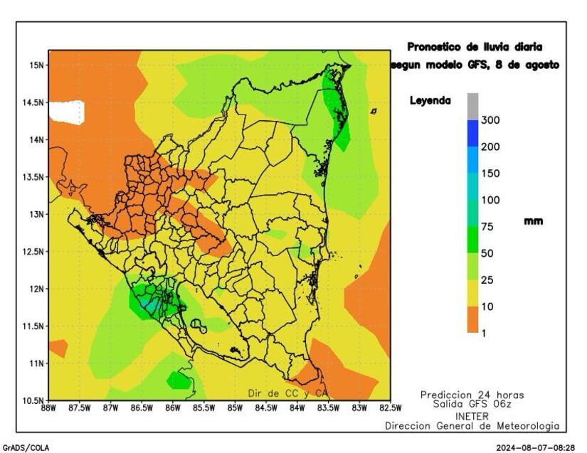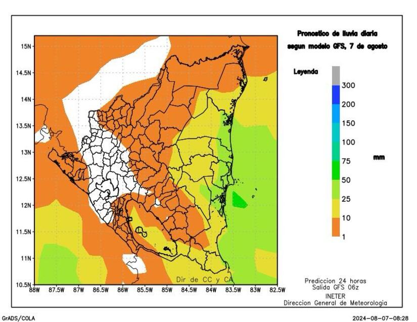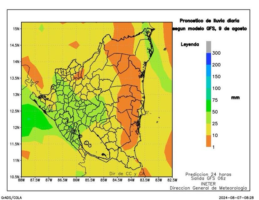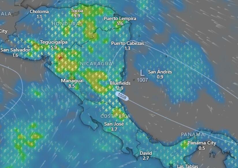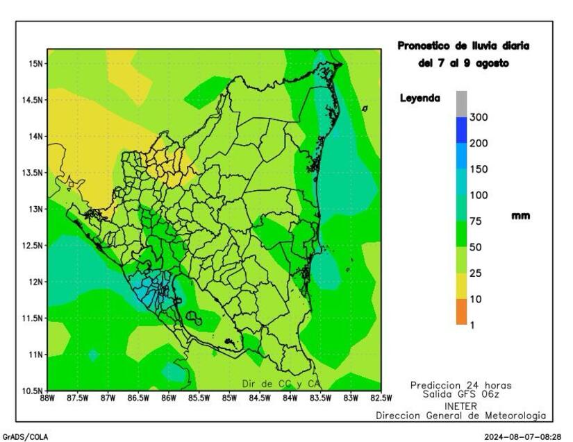 El día de hoy, se observa un área de Baja Presión frente a las Zonas del Caribe de Nicaragua, se prevé que muy probablemente puedan alcanzar el territorio nacional para el día de mañana jueves 8 de agosto.