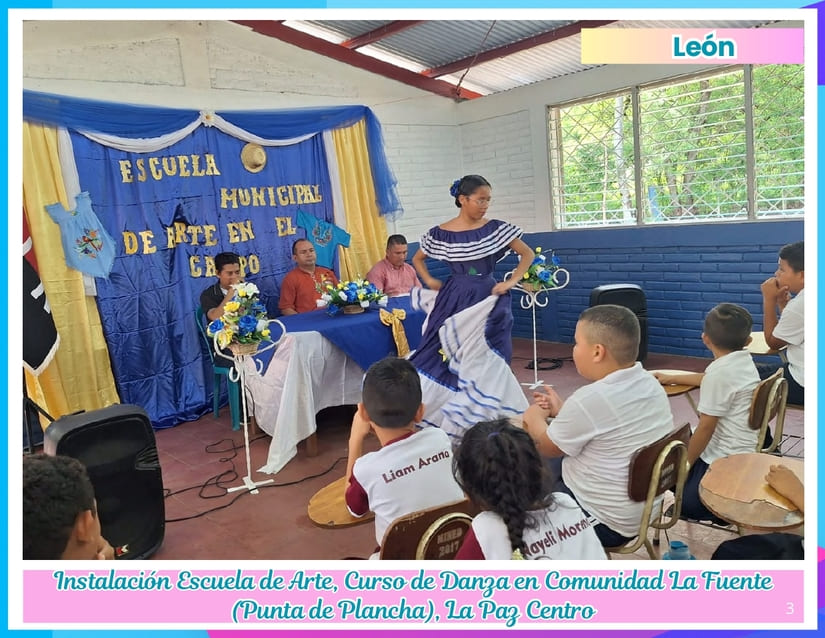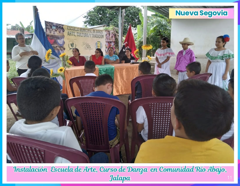 Del 10 al 17 de Agosto de 2024, hemos instalado 3 nuevas Escuelas de Artes en el Campo, en los Municipios de : Jalapa, Comunidad Río Abajo; El Sauce, Comunidad San Ramón.