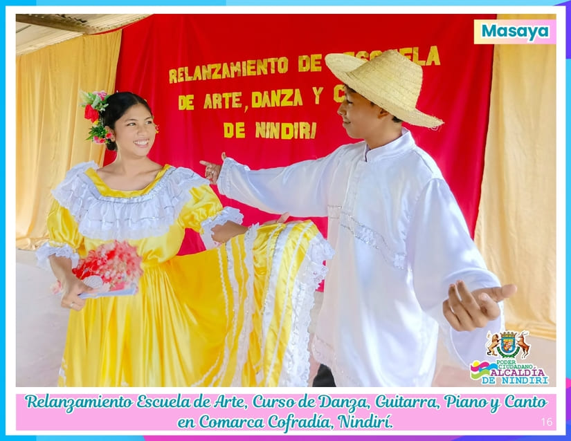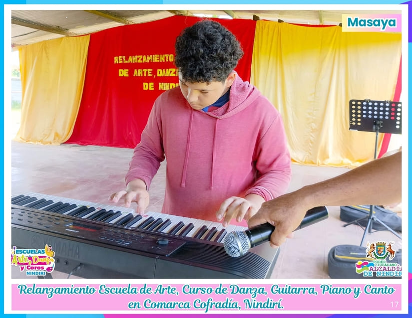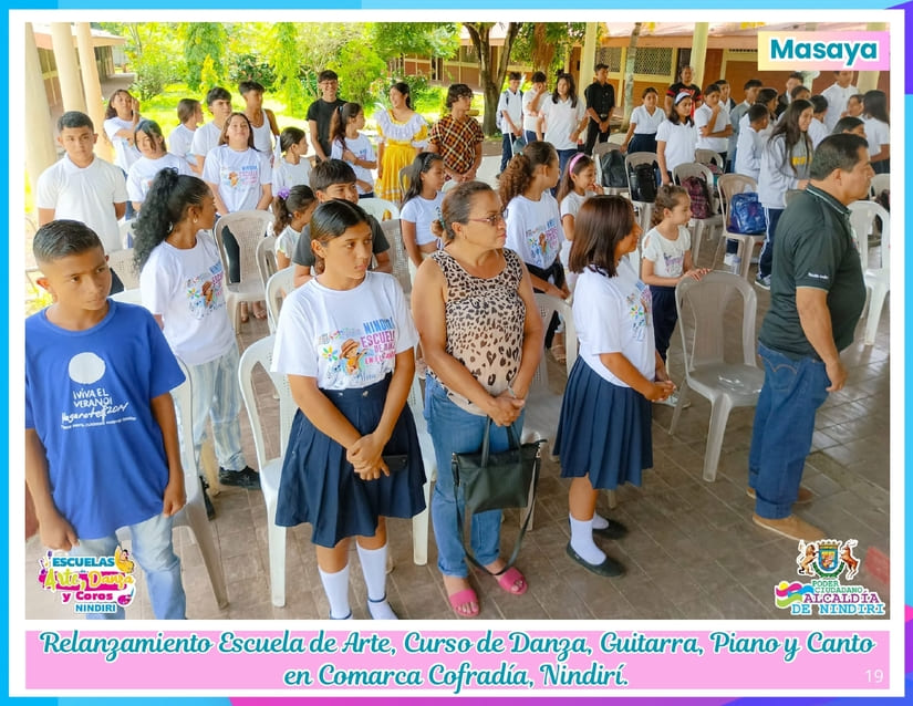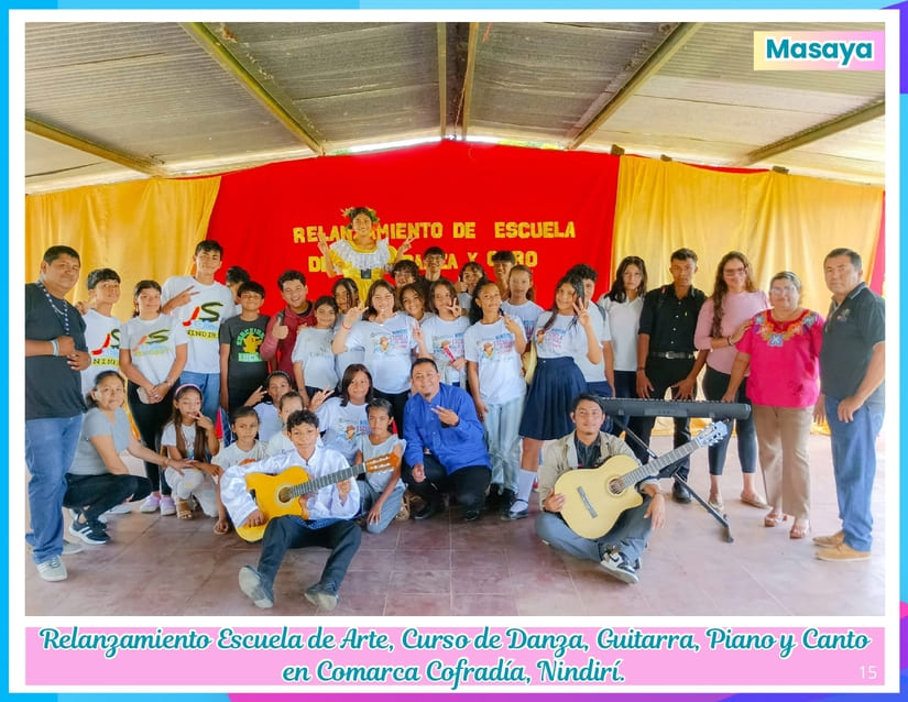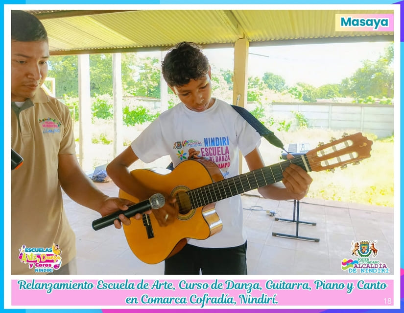 Además tenemos cursos que se desarrollan en los Municipios de La Paz Centro, Comunidad La Fuente (Punta de Plancha): Curso de Danza; El Sauce, Comunidad San Ramón: Curso de Dibujo y Pintura; Desembocadura de Río Grande, Comunidad Kara: Curso de Coro; Jalapa, Comunidad Río Abajo: Curso de Danza; Nindirí, Comunidad Tierra de Encantos y Leyendas: Curso de Danza; Comarca Cofradía: Curso de Danza; Condega, Comunidad Ducuale Grande: Cursos de Danza y Cerámica.
