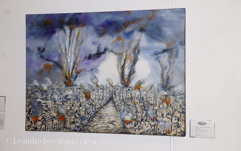“Jorge ha entrado a ser parte de los pintores de la plástica nicaragüense y nos alegra mucho que sus cuadros son geniales y sobre todo hace homenaje a todo lo que le pasa a los hermanos palestinos en Gaza, ha dedicado un par de cuadros a esa terrible barbarie y el artista es ese, no solo el que nos muestra la belleza sino también el que utiliza su arte para denunciar la barbarie en contra de los hermanos palestinos”, destacó.