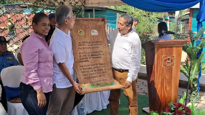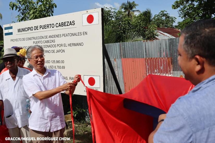 Durante su estadía, Miércoles y Jueves, se realizó una cálida recepción, inauguramos 900 metros de andenes peatonales, financiados por Japón y fondos propios de la Alcaldía. Luego estuvimos en el Puente del Wawa, y zonas costeras de la ciudad dé Bilwi.