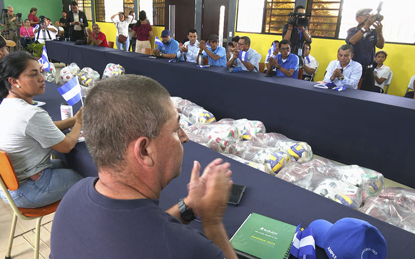 "Aquí estamos reunidos con directores de centros públicos del departamento de Managua, para hacer entrega de kits deportivos; también con nuestros asesores departamentales de todo el país; a cada uno de ellos, les estaremos entregando un kit deportivo, el kit corresponde a balones de fútbol, baloncesto, voleibol", describió.