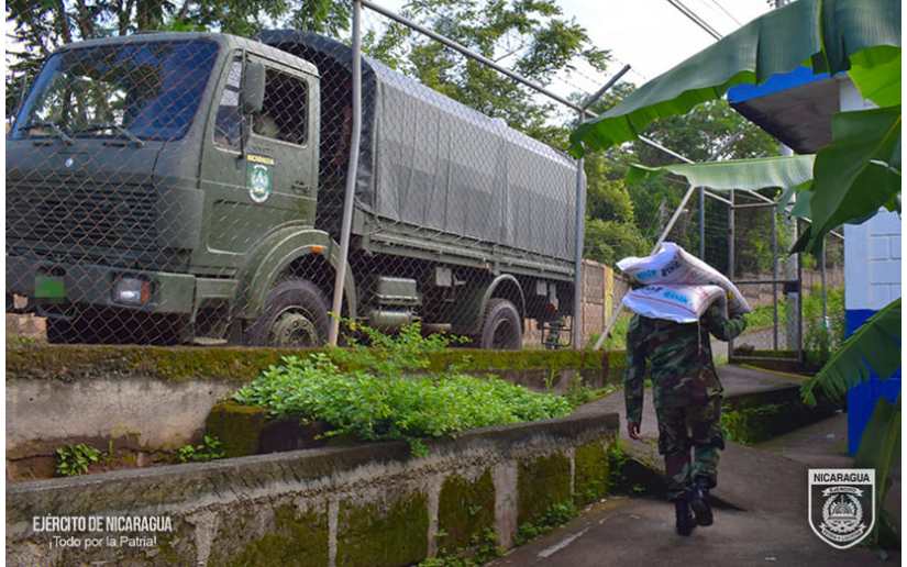 El Ejército de Nicaragua consecuente con el lema de que “Somos el Pueblo mismo uniformado trabajando en su propio beneficio”, el 19 de agosto de 2024, a través del 5 Comando Militar Regional, en coordinación con el Ministerio de Educación (MINED), participó en el cargue de 281 quintales de alimentos (arroz, frijoles, maíz, cereal) y 524 litros de aceite, en la Escuela Especial “Padre Miguel Gonfia Lazari”, posteriormente, se trasladó y descargo en los centros escolares, “Pablo Hurtado” y “Rosa Lanzas”, del municipio de Juigalpa, departamento de Chontales, beneficiando a 961 estudiantes.