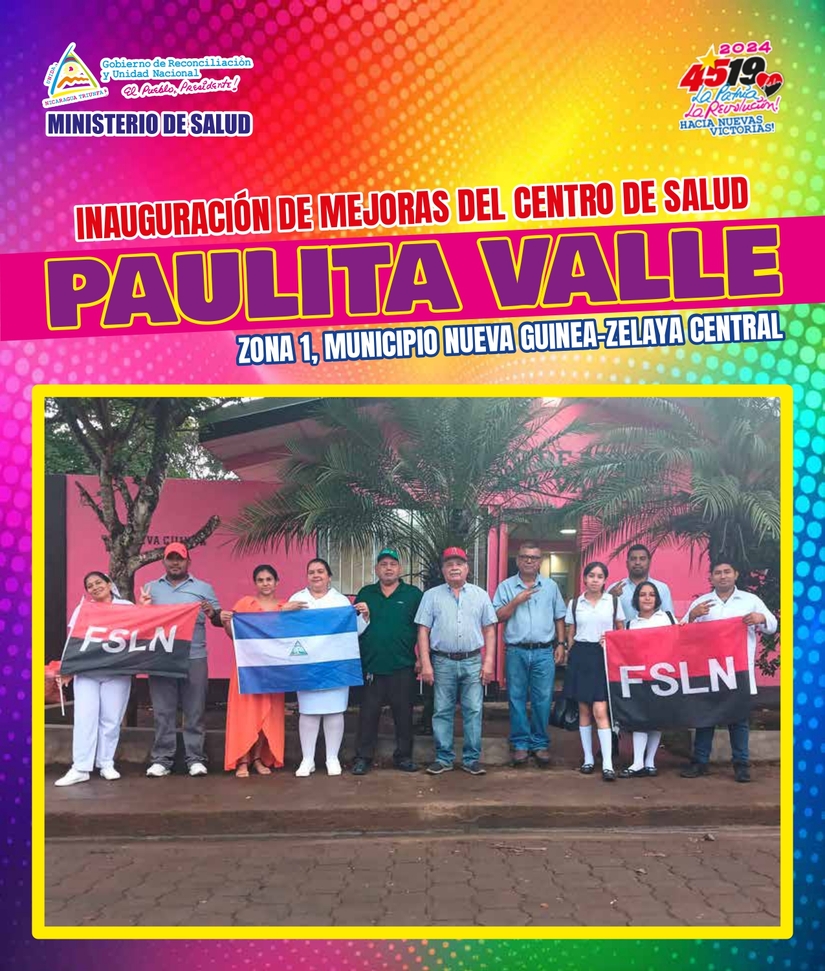 Mañana Jueves 22 de Agosto, inauguraremos las mejoras del Puesto de Salud “Paulita Valle”, en la Zona 1, Municipio Nueva Guinea, Zelaya Central, lo que nos permitirá atender en mejores condiciones a casi cinco mil habitantes de una Comunidad y dos Barrios de esta localidad (Inversión 650 mil córdobas).