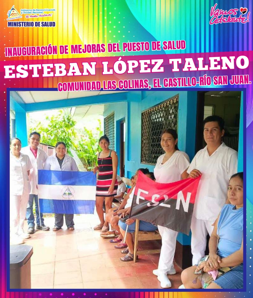 También, mañana Jueves, entregaremos mejorado el Puesto de Salud “Esteban López Taleno”, Comunidad Las Colinas, Municipio El Castillo, Río San Juan; para atender en condiciones dignas a más de mil personas que habitan en tres Comunidades de este Municipio (Inversión 305 mil córdobas).