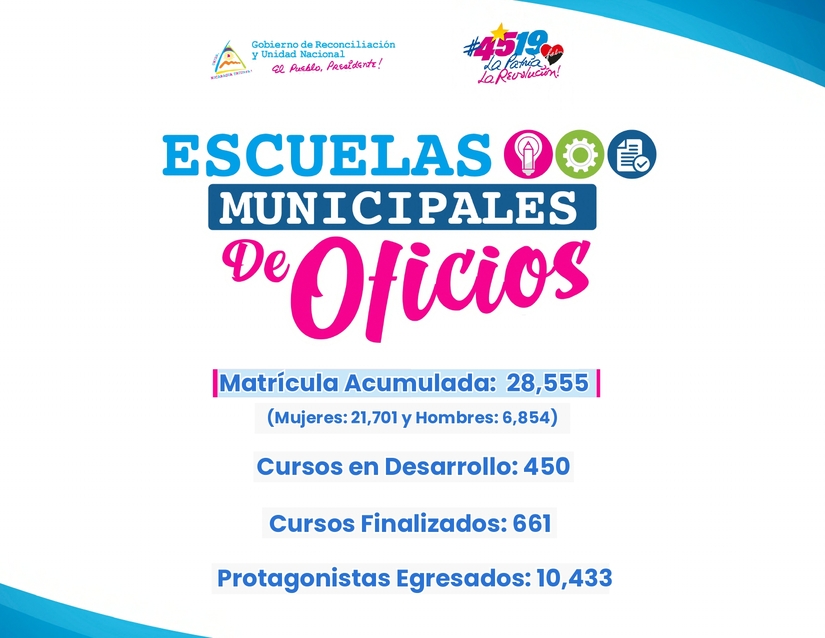 Escuelas Municipales de Oficios cuenta con más de 28 mil matrículas en toda Nicaragua