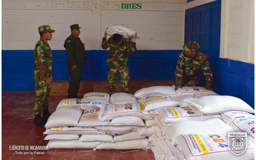 El Ejército de Nicaragua consecuente con el lema de que “Somos el Pueblo mismo uniformado trabajando en su propio beneficio”, el 21 de agosto de 2024, a través del 5 Comando Militar Regional, en coordinación con el Ministerio de Educación (MINED), participó en el cargue de 126 quintales de alimentos (arroz, frijoles, maíz, cereal) y 228.75 litros de aceite, en la Escuela Especial “Padre Miguel Gonfia Lazari”, posteriormente, se trasladó y descargó en la escuela “Leyden”, municipio de Juigalpa, departamento de Chontales, beneficiando a 375 alumnos.
