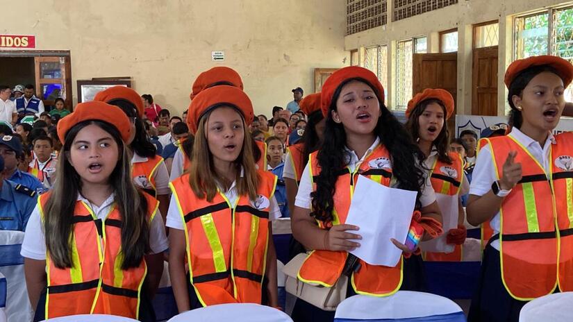 En un acto festivo acompañado por números culturales y presentación de bandas rítmicas, la Comisionada General Vilma Reyes, Jefa de Tránsito Nacional, presentó a las autoridades municipales, estudiantes y docentes, la nueva Cartilla de Educación Vial cuyo propósito es proteger la Vida de las personas tanto peatones como conductores.