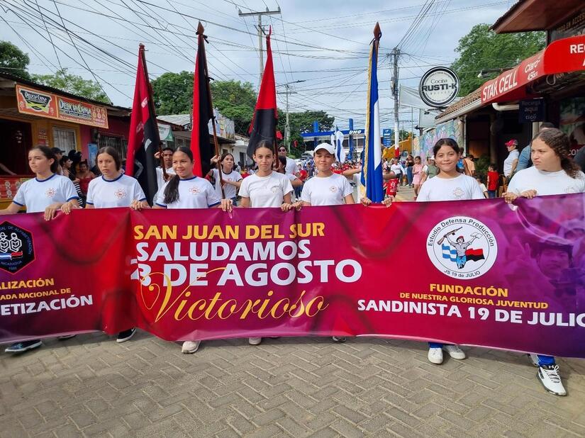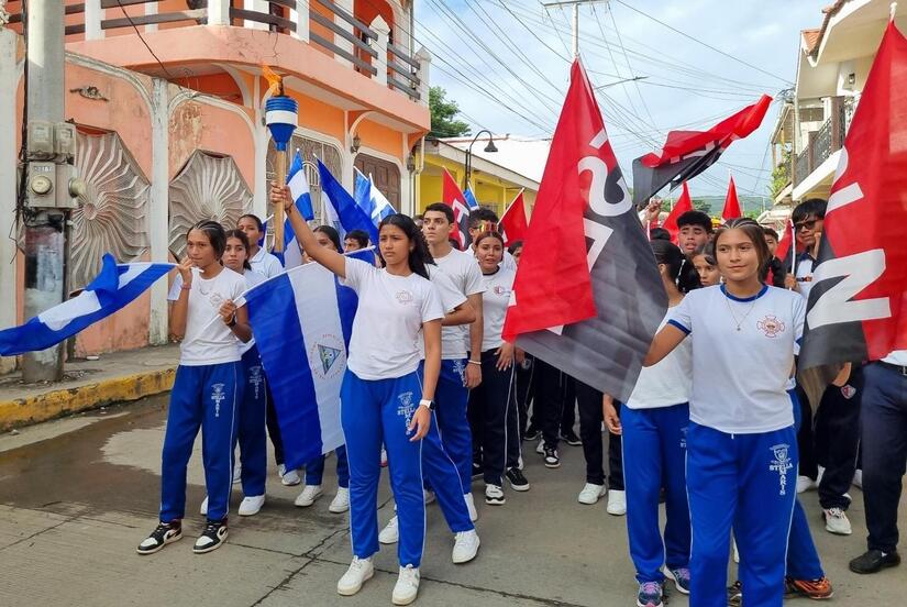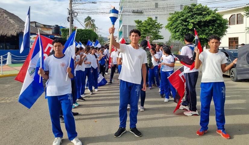 Las calles de Rivas se llenaron de los colores azul y blanco, mientras se llevaban a cabo festivales, corridas de antorchas, desfiles de bandas rítmicas y maratones deportivos.