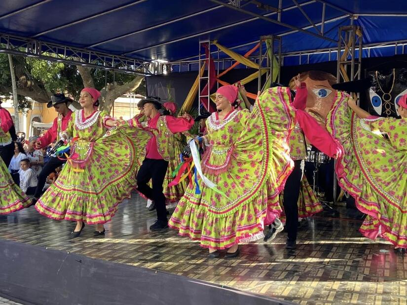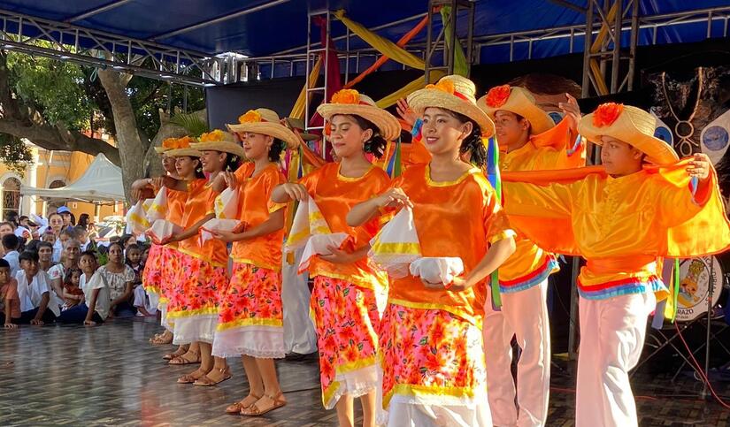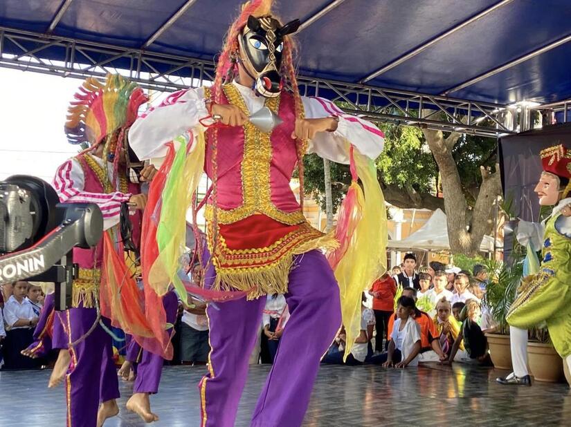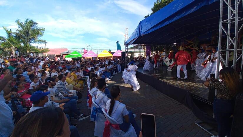Al llegar a la plaza del parque fueron recibidas por una reviste cultural que destaco la autenticidad de los bailes de cada municipio, las autoridades entregaron imágenes réplicas de la obra que es patrimonio oral e intangible de la humanidad “El Güegüense”.