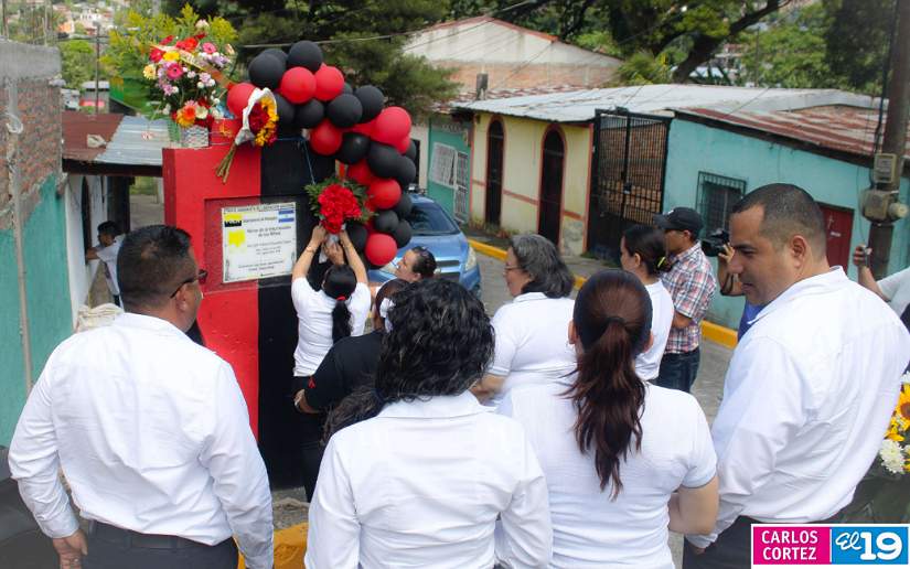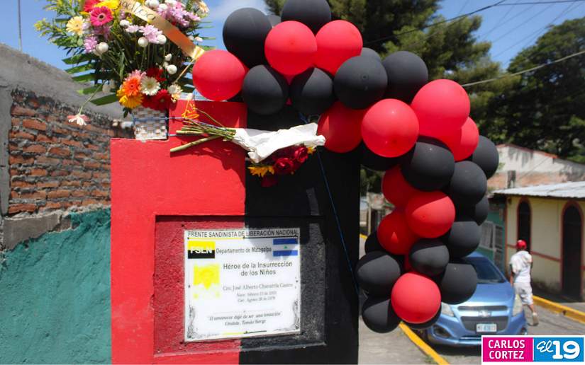 Seguidamente, la militancia sandinista se dio cita en el monumento a José Alberto Chavarría ubicado en el barrio El Progreso, quien fue un joven asesinado por la Guardia de Somoza y cuyo sacrificio prendió la chispa de la primera insurrección en Nicaragua.
