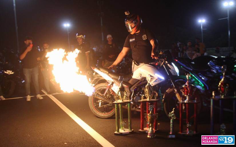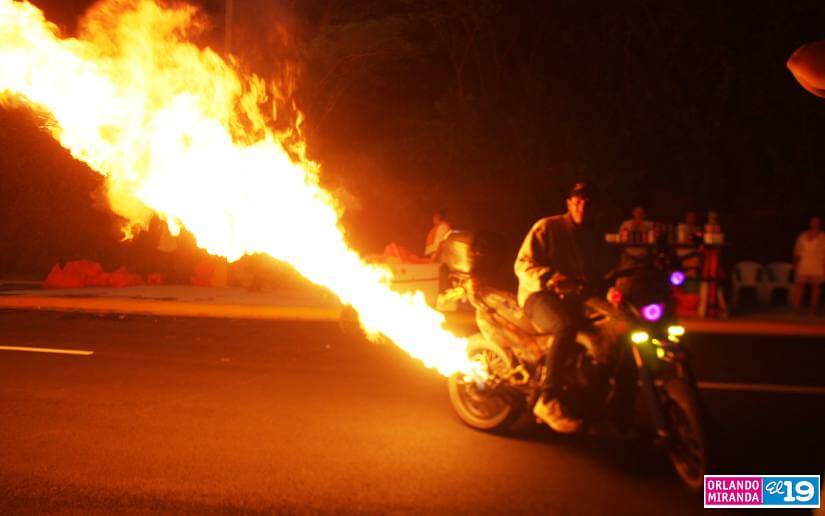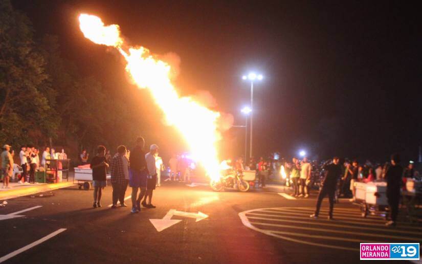 Una columna de llamas a lo lejos marcó el punto en Managua en el que se reunieron los propietarios de motocicletas y autos modificados de la capital, para lucir nuevamente sus vehículos este domingo.