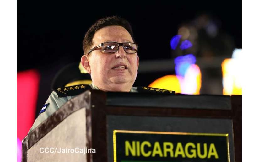 “Seguridad es tener estabilidad, tranquilidad y paz, condiciones necesarias para el desarrollo y bienestar de la nación. El Ejército de Nicaragua es un recurso de orden estratégico de la nación nicaragüense. Somos un recurso de orden estratégico porque sin descuidar nuestra principal misión, de manera flexible empleamos fuerzas y medios para hacer aportes relevantes a la patria. Con firmeza y valentía los integrantes del Ejército de Nicaragua contribuimos para que nuestra patria siga siendo el país más seguro de la región porque desde la efectiva estrategia nacional del muro de contención garantizamos en coordinación con diferentes instituciones y nuestros hermanos de la Policía Nacional que en Nicaragua no existan carteles de narcotráfico y crimen organizado, no existan pistas clandestinas, no seamos bodega del narcotráfico, no existan células ni bases logísticas ni del narcotráfico ni de terroristas”.