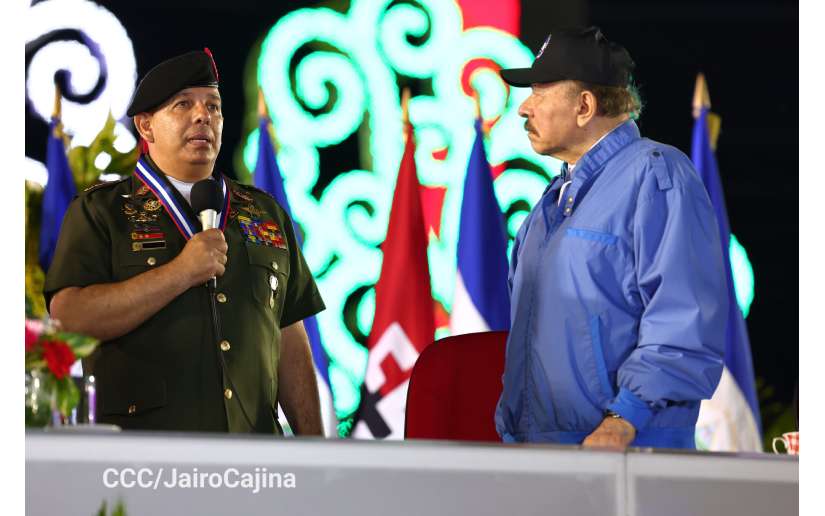 Subrayó que “le decimos el saludo chavista porque es el hombre que desempolvó las páginas de la historia de todo los que no quisieron ocultar, nos hizo ver más allá de nuestras narices nos hizo ver lo que es importante que es el pueblo porque hoy casualmente en el cuadragésimo quinto aniversario de este digno ejército nicaragüense, lo decía bien el General Avilés que venimos del pueblo, somos del pueblo y nos debemos al pueblo”.