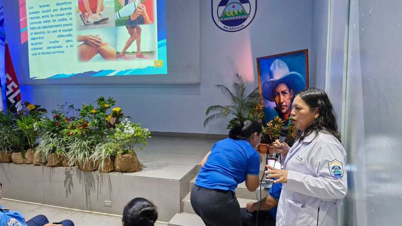 Jenny Haydee López Chavarría, médico de las instalaciones centrales del MINT, fue la que impartió el taller de las casi 30 cartillas de salud que han venido emitiendo las autoridades nacionales de la salud en Nicaragua.