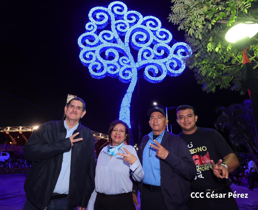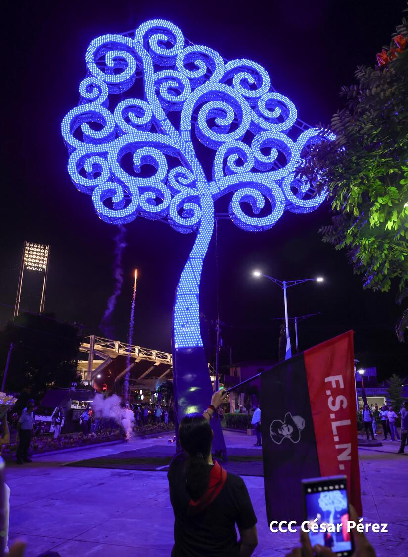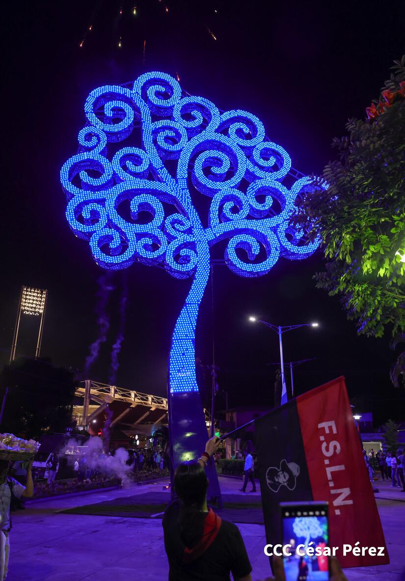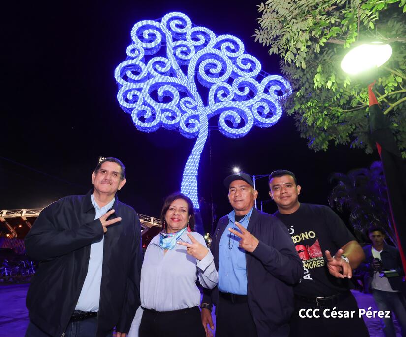 El Alcalde y Secretario Político del FSLN en Estelí, compañero Francisco Valenzuela, junto a la vicealcaldesa Profesora Melania Peralta, concejales sandinista y familias, participaron de la inauguración del Árbol de la Vida que ahora cada noche ilumina las nuevas victorias y es la guía para seguir por las sendas del progreso y desarrollo.