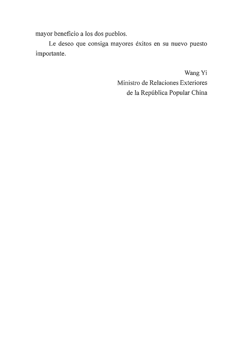 Importante Saludo que ha hecho llegar el Ministro de Relaciones Exteriores del Pueblo y Gobierno de la República Popular China, a nuestro Canciller, Compañero Valdrack Jaentschke.