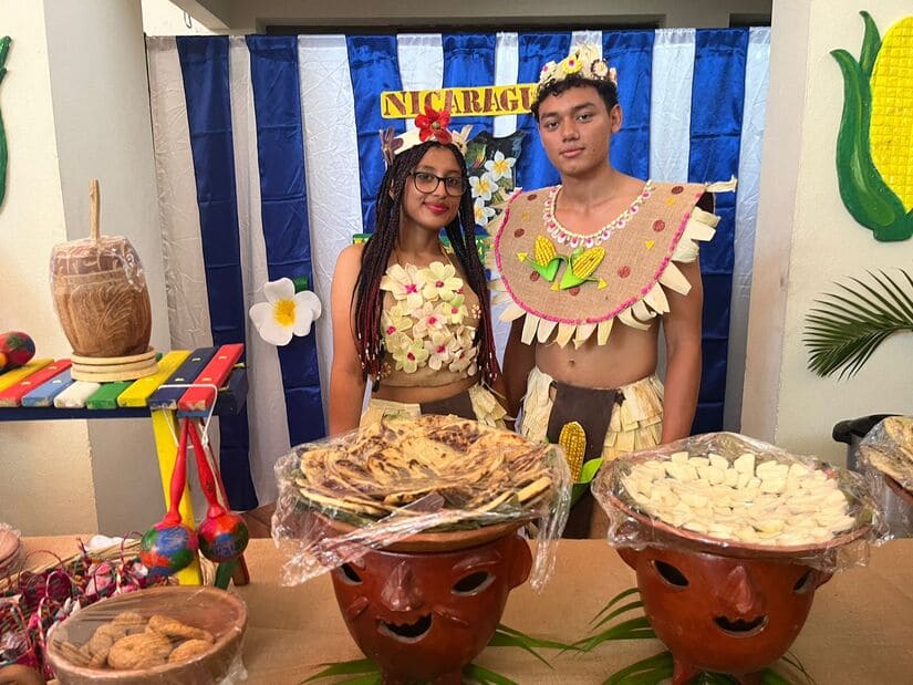 El estudiante de cocina y gastronomía nivel 1, Michael Francisco Vega, comentó que el maíz es la base de la gastronomía nicaragüense “realizamos una exhibición de güirila, acompañada de cuajada, una comida típica, ya que la base de nuestra gastronomía es el maíz, de donde se elaboran las tortillas, tamales, nacatamales”.
