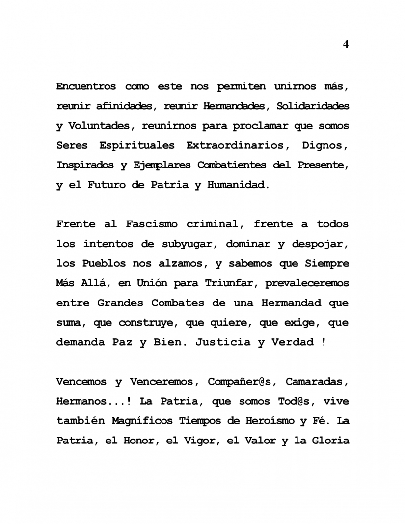 Vencemos y Venceremos, Compañer@s, Camaradas, Hermanos...! La Patria, que somos Tod@s, vive también Magníficos Tiempos de Heroísmo y Fé. La Patria, el Honor, el Vigor, el Valor y la Gloria son Inmortales ! La Patria, “Paraíso de toda la Humanidad”. És la Victoria !
