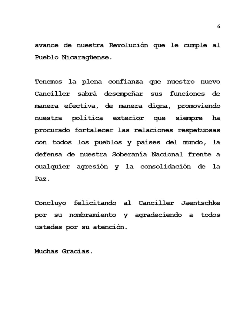 Concluyo felicitando al Canciller Jaentschke por su nombramiento y agradeciendo a todos ustedes por su atención.