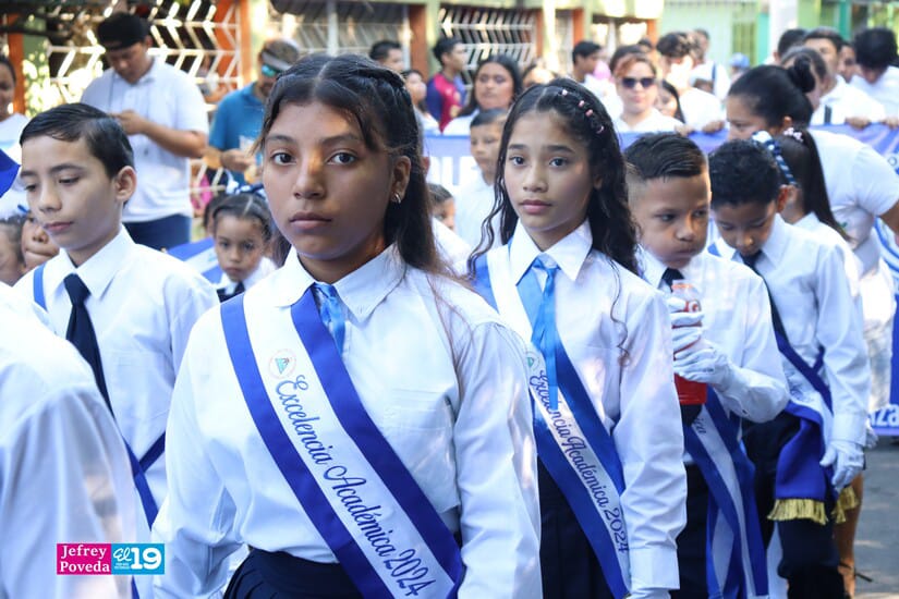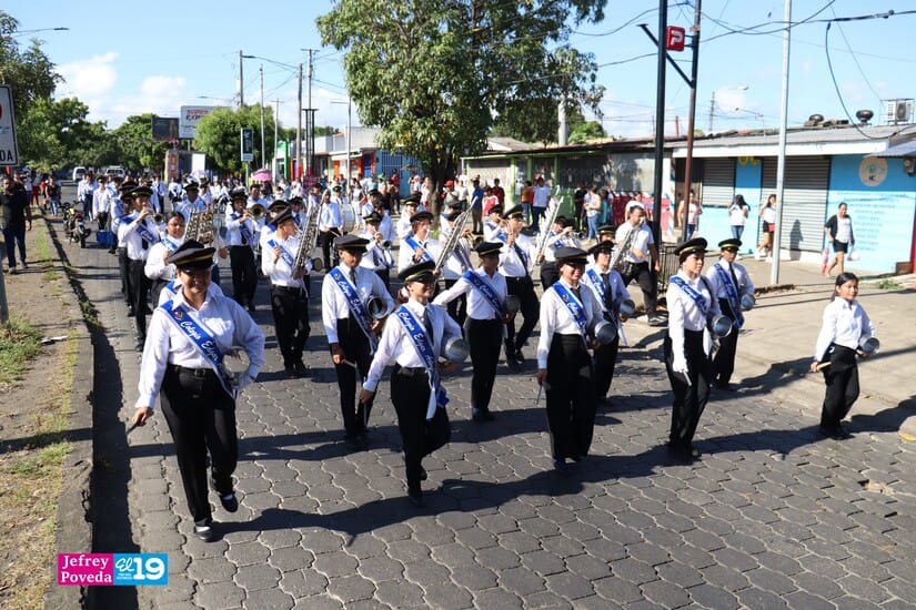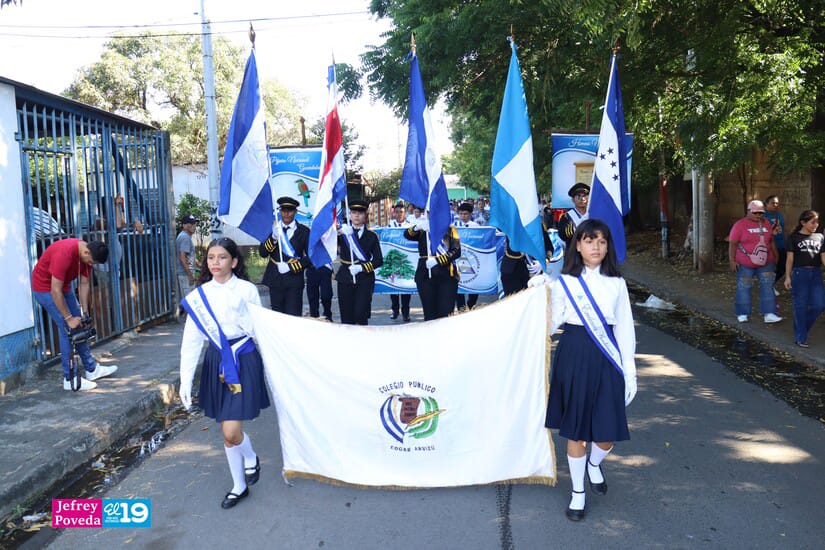 El desfile incluyó bandas rítmicas, presentaciones artísticas y otros actos que resaltaron los valores nacionales, recibiendo aplausos y reconocimiento por parte de la comunidad y autoridades presentes.