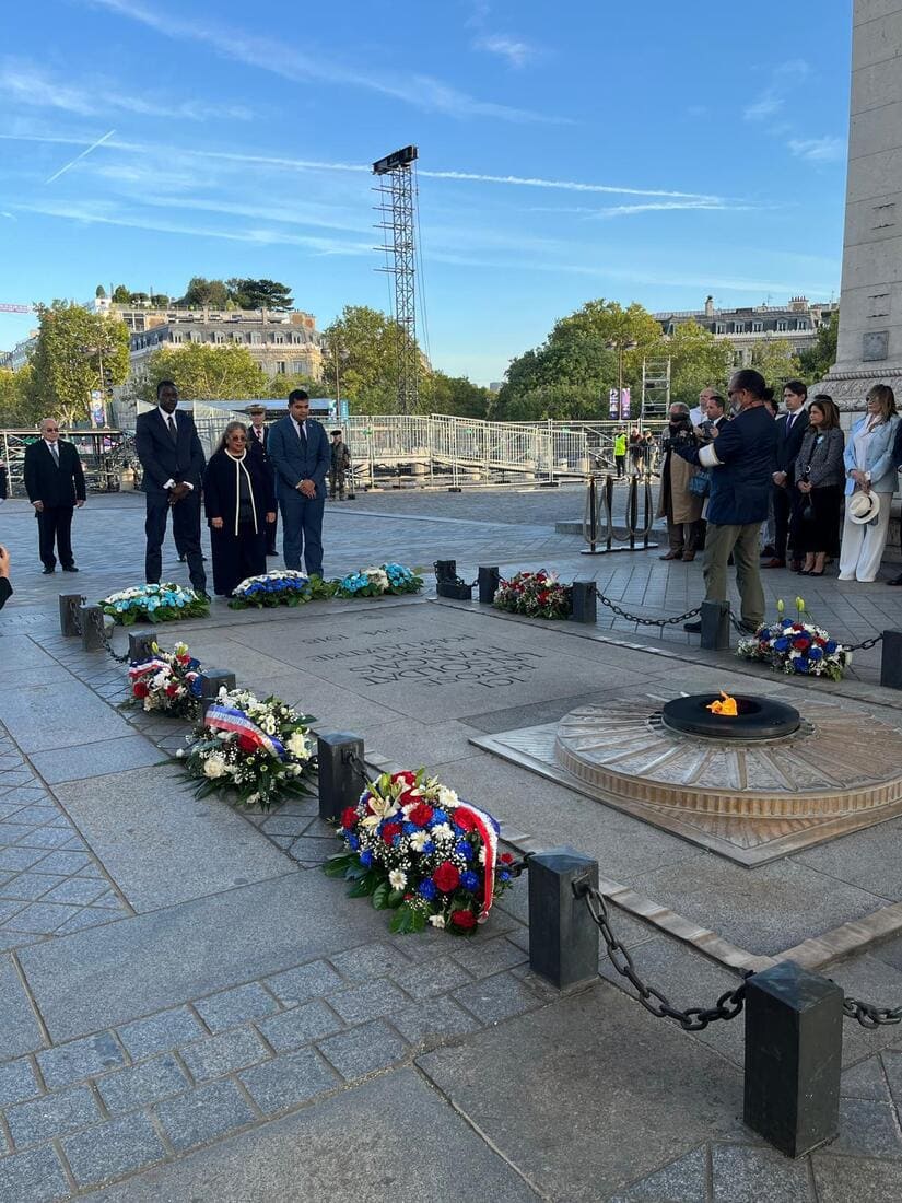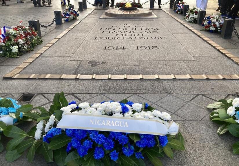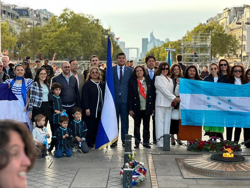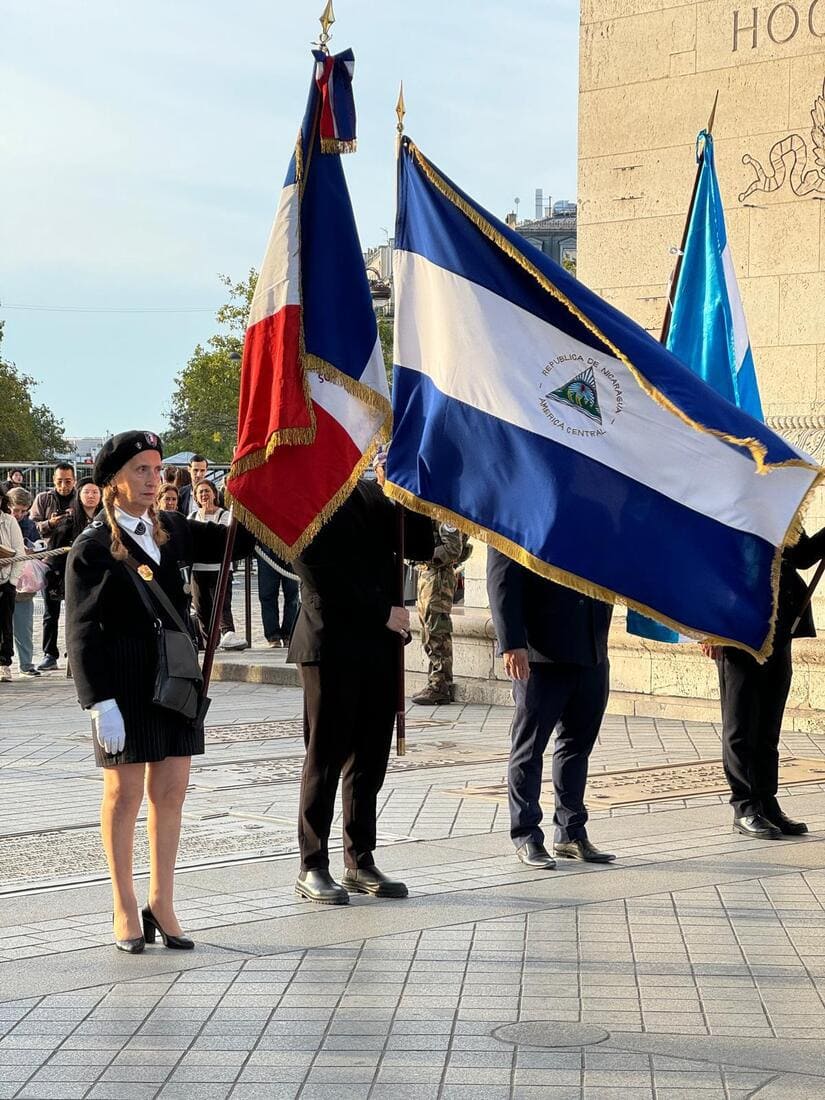 El domingo 15 de septiembre de 2024, se celebró en París una emotiva ceremonia para conmemorar el 203° aniversario de la independencia de los países centroamericanos de la Corona Española. Este acto solemne, realizado bajo el majestuoso Arco del Triunfo, incluyó el tradicional reavivamiento de la llama (ravivage de la flamme) en la tumba del Soldado Desconocido, seguido de una ofrenda floral en honor a los héroes caídos por la libertad. La ceremonia fue organizada de manera conjunta por las embajadas de Nicaragua, Guatemala y Honduras en Francia, en colaboración con las autoridades francesas.