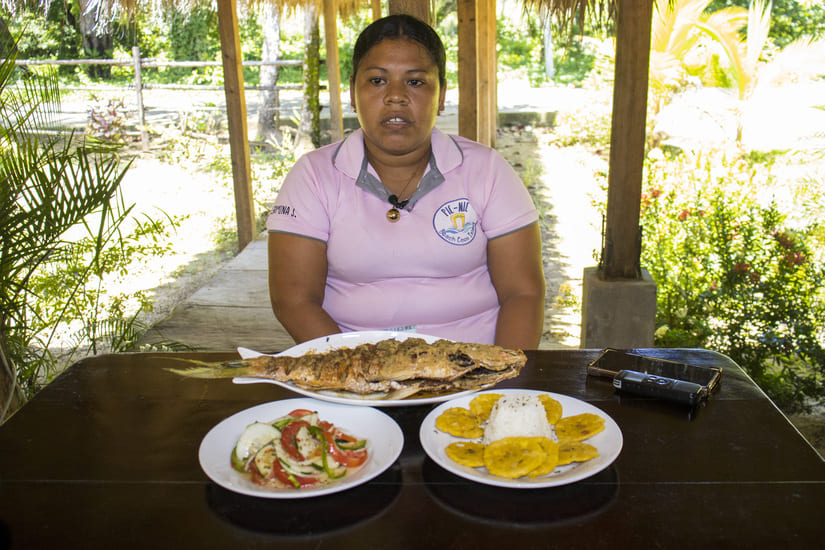 “Tenemos una variedad de comida para turistas nacionales y extranjeros. Nuestros platillos más buscados son el pescado frito, ceviche, langosta, variedad de rondón y estamos abiertos desde las diez de la mañana hasta las diez de la noche, todos los días”, mencionó.