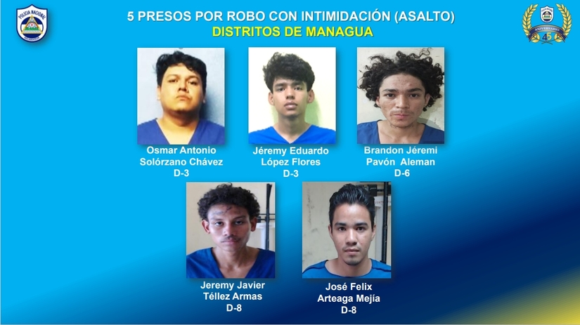 Por robo con intimidación fueron detenidos cinco sujetos en los Distritos de Managua, así como dos sujetos en Jinotega.