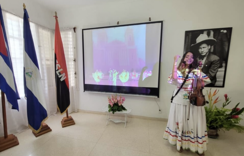 La exhibición, acompañada de música nicaragüense interpretada por la violinista Laura María López Morgado, refleja el patrimonio histórico de luchas y victorias de dignidad nacional de nuestra Nicaragua Bendita, crisol multicultural, multiétnico, multilingüe, el lienzo de colores de nuestros lagos y volcanes, su exuberante naturaleza, su gente, sus tradiciones.