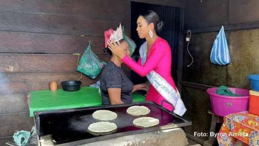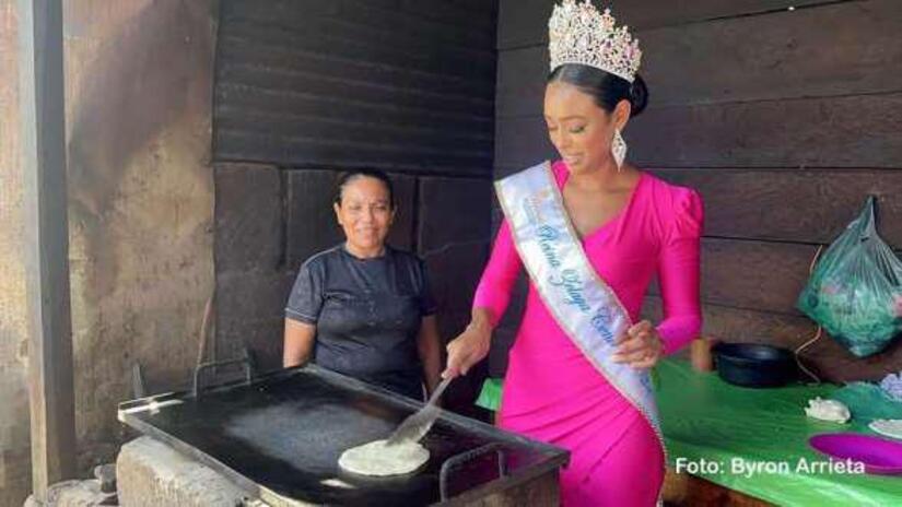 Reina Nicaragua Nicole Luzbianka Hodgson Rodríguez con su mamá Julia Rodríguez, originarias de El Rama.