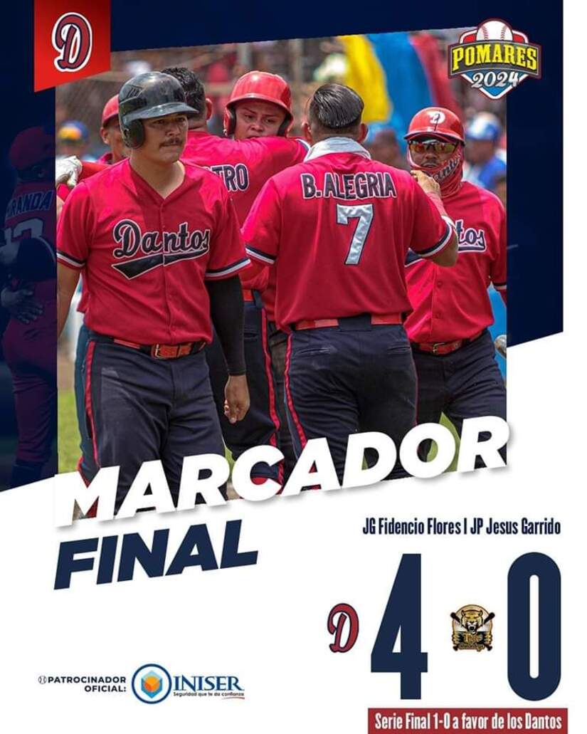 Un rally de 4 carreras en el sexto inning fue suficiente para que los dirigidos por Omar Cisneros conquistaran la victoria. Jesús Garrido y Fidencio Flores se trenzaron en un duelo de pitcheo que se mantuvo a cero hasta ese sexto episodio, en el que Garrido fue víctima de su propio descontrol. Dereck Loáisiga fue el bateador más destacado por los Dantos al terminar de 3-1 y empujar 2 carreras.