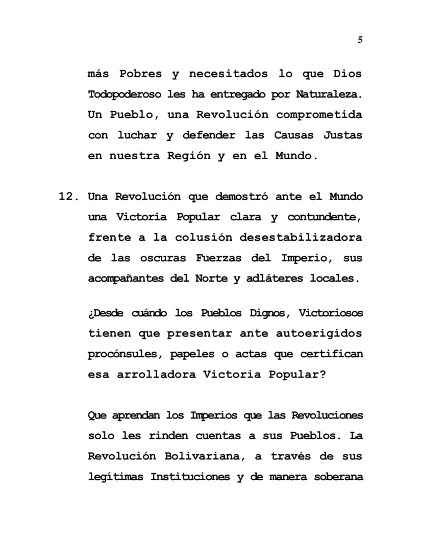 12. Una Revolución que demostró ante el Mundo una Victoria Popular clara y contundente, frente a la colusión desestabilizadora de las oscuras Fuerzas del Imperio, sus acompañantes del Norte y adláteres locales.