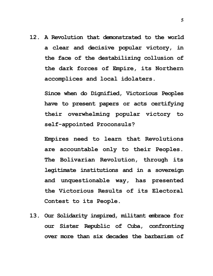 12. A Revolution that demonstrated to the world a clear and decisive popular victory, in the face of the destabilizing collusion of the dark forces of Empire, its Northern accomplices and local idolaters.