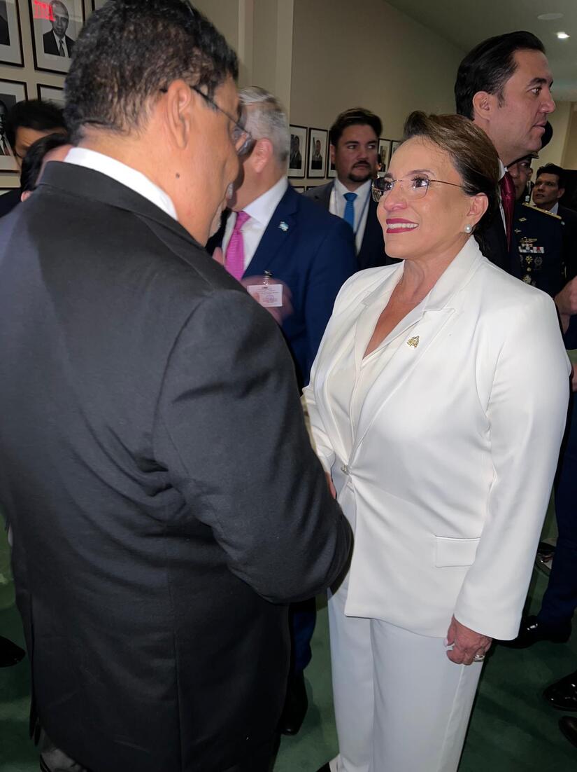El Compañero Canciller también saludó a la Compañera Xiomara Castro, Presidenta de Honduras después de pronunciar su discurso ante la Asamblea General de la ONU.