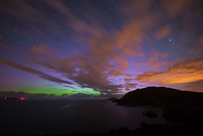 El espectáculo dejó ver un estallido de luces de color verde en el cielo, el cual se produce cuando las partículas cargadas provenientes del sol chocan con el campo magnético de la Tierra, intentando sumergirse en la atmósfera.
