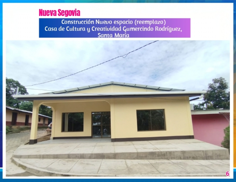 • Santa María, construcción nuevo espacio (reemplazo) de la Casa de Cultura y Creatividad Gumercindo Rodríguez.