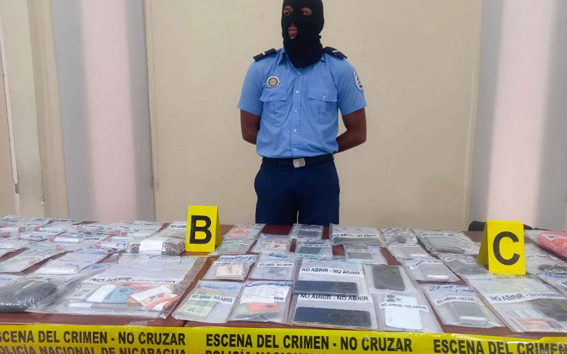 “También por tráfico de droga, pero esta vez en el municipio de Corinto, Chinandega, fue capturado Pablo Sixto Rodríguez Valle, a quien se le incautó 5 kilos con 984.5 gramos de cocaína, 2 automóviles y un teléfono celular; luego tenemos como abastecedor de drogas, siempre en Chinandega, a Alexis Gabriel Sánchez, a quien se le ocupó 540 gramos de marihuana, 14 gramos de cocaína, 5 teléfonos celulares y dinero en efectivo”, detalló el comisionado general.