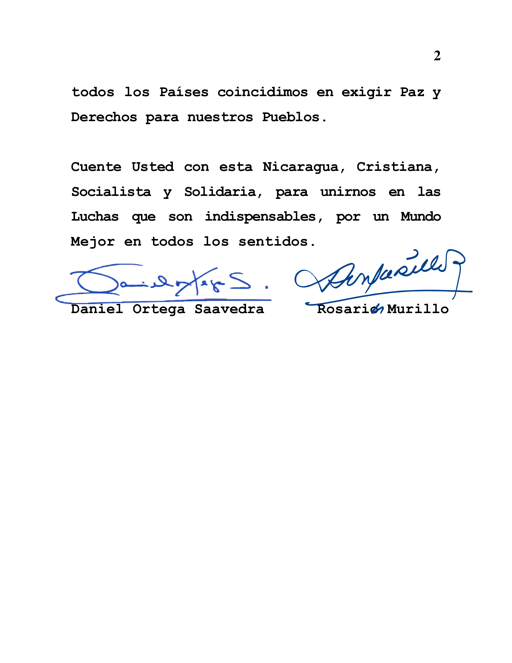 Cuente Usted con esta Nicaragua, Cristiana, Socialista y Solidaria, para unirnos en las Luchas que son indispensables, por un Mundo Mejor en todos los sentidos.