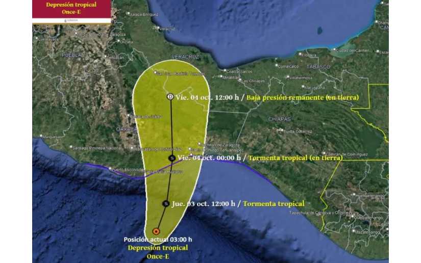 La #DepresiónTropical Once-E continúa al suroeste del #GolfoDeTehuantepec. Más información en ⬇️ https://t.co/VVYNAkgh8w pic.twitter.com/wWrQxz0SjI