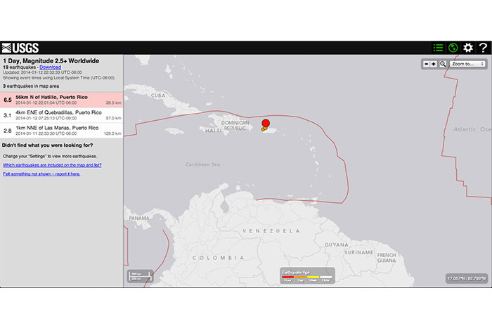 El epicentro se ubica a una profundidad de unos 28 kilómetros, al norte de la isla, a 56 kilómetros de Hatillo.