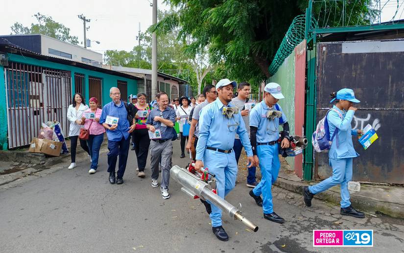 Brigadistas de Salud y comunidad organizada se unieron en el barrio Carlos Fonseca Amador del Distrito V, para ejecutar una jornada de lucha antiepidémica integral contra las enfermedades vectoriales.