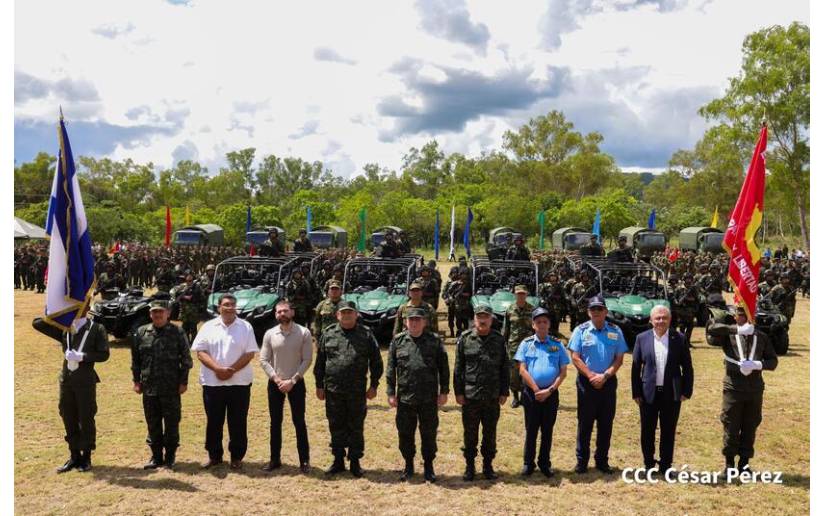 El acto estuvo presidido por el Comandante en Jefe del Ejército de Nicaragua, General de Ejército Julio César Avilés; el Jefe de Estado Mayor General del Ejército de Nicaragua, Mayor General Bayardo Ramón Rodríguez Ruiz; el Inspector General, Mayor General Marvin Elías Corrales Rodríguez; el jefe del 6 Comando Militar Regional, Coronel Inf. DEM Osmin Edgardo García; el Primer Comisionado Francisco Díaz Madriz, Director General de la Policía Nacional; el Compañero Laureano Ortega Murillo, Asesor Presidencial para la Promoción de Inversiones, Comercio y Cooperación Internacional; el Presidente del Banco Central de Nicaragua, Ovidio Reyes y el compañero Valdrack Jaentschke, Ministro de Relaciones Exteriores de Nicaragua.