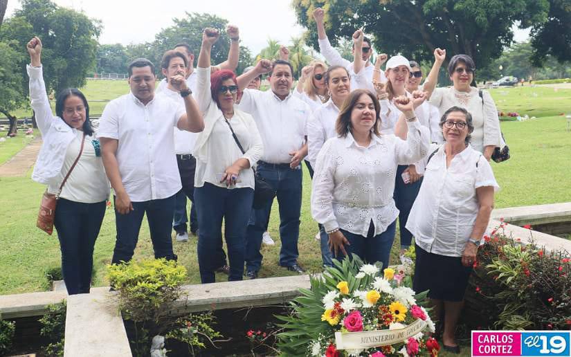 La Ministra de Educación, compañera Mendy Aráuz, realizó una visita por diferentes campos santos, para colocar ofrendas florales, junto a otros servidores públicos.