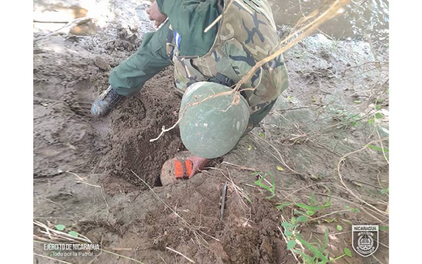 El Ejército de Nicaragua consecuente con el lema de que “Somos el Pueblo mismo uniformado trabajando en su propio beneficio”, el 4 de noviembre de 2024, a través del 2 Comando Militar Regional, en coordinación con el Cuerpo de Ingenieros “General de Brigada Miguel Ángel Ortez y Guillen”, realizaron reconocimiento y voladura de mina, encontrada en la comunidad Santa Paula, municipio de Somotillo, departamento de Chinandega.
