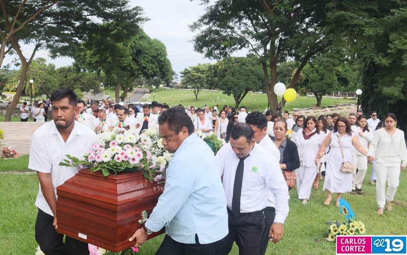 Con música filarmónica y un ambiente emotivo en el cementerio Sierras de Paz, familiares, amigos y colegas dieron el último adiós a la Compañera Maira Reyes Sandoval, mujer comunicadora, revolucionaria, combatiente y militante sandinista.
