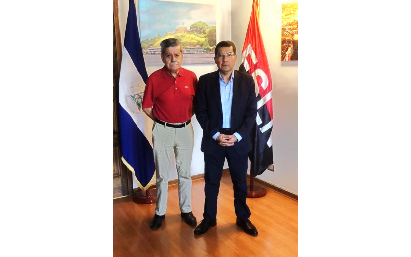 Durante el cordial intercambio, nuestro Encargado de Negocios, Compañero Carlos Midence, trasmitió el saludo de nuestro Presidente Comandante Daniel, nuestra Vicepresidenta, Compañera Rosario Murillo y el Pueblo de Nicaragua.